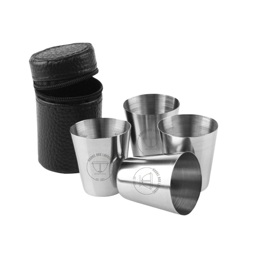 4x 30ml Metal Shot Glasses with Carry Case